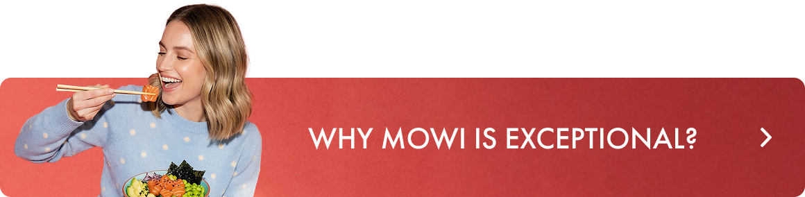 MOWI kännetecknas av sin jämna, naturligt fylliga färg och tydliga marmorering. Fettet i laxen bidrar till en fyllig smak och saftig konsistens.